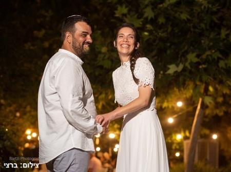 חגי הגדיר את עצמו כמסורתי ואני בכלל חיפשתי לי דתי לאומי. בשלב מסוים אמרתי לעצמי: רגע, בואי תנסי גם בקטגוריות אחרות, מה יכול להיות, הרי את מחפשת איש טוב ולא כותרות. נכנסתי ל"מסורתיים", הצצתי בכרטיס של חגי ולמוחרת חיכתה לי הודעה ממנו. אחרי 7 חודשים האיש מהכרטיס ואני התארסנו, והתחתנו בקיץ בחתונת קורונה אינטימית משפחתית ומיוחדת בגינה מהממת של שכנים טובים.