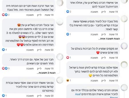 התגובות על הפוסט ברשתות החברתיות לא איחרו להגיע. ברחבי הרשת התקבלו אלפי לייקים ומאות אלפי צפיות. מאות זוגות הגיבו שגם הם הכירו באמצעות הפלטפורמה והקימו בית בישראל, חלקם הגדול עם מספר ילדים.
