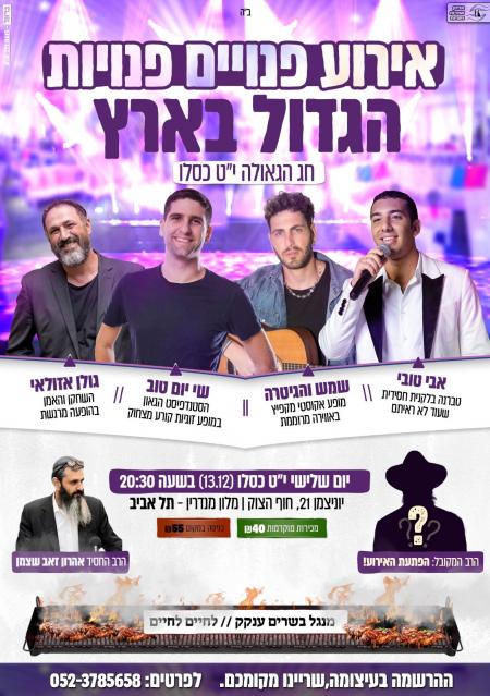 ארגון אחדות וזוגיות מזמין אתכם לאירוע פנויים פנויות הגדול בארץ בחג הגאולה - י"ט כסלו 🔥