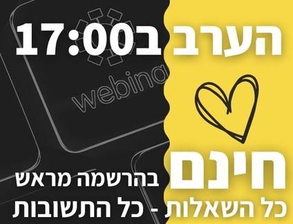 הערב ב17:00! שידור חי שיענה לכם על כל השאלות - חינם בהרשמה מראש >>