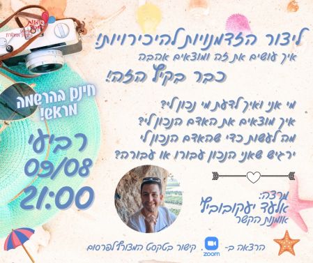 ניפגש ברביעי 9.8.23 בשעה 21:00 בערב - ללא עלות >> לחצו לפרטים >>