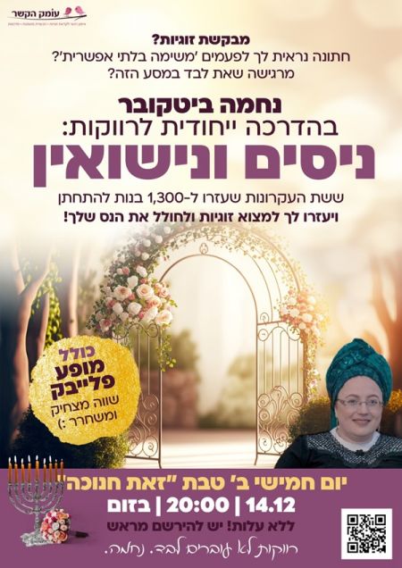נחמה ביטקובר - ראש מכון עומק הקשר (יצא לך לשמוע עליהם? הם ליוו כבר מעל 1300 לחופה. כן, גם לי נשמטה הלסת) מזמינה אותך -