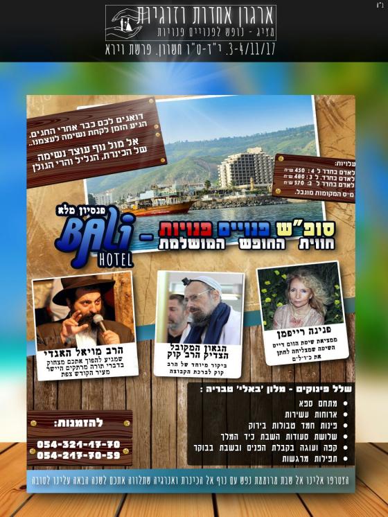 דואגים לכם כבר אחרי החגים ב"ה.. הגיע הזמן לקחת נשימה לעצמנו :) ארגון ׳אחדות וזוגיות׳ מזמינים אתכם לסופ"ש פנויים פנויות קסום! ואיתו חווית החופש המושלמת אל מול נוף עוצר נשימה של הכנרת, הגליל והרי הגולן.